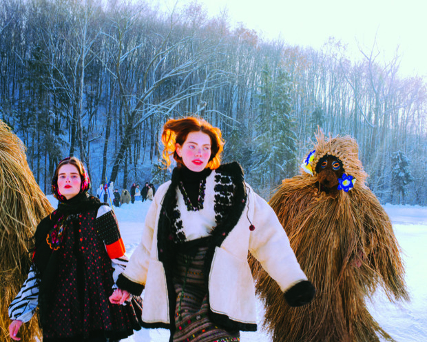 Фотосесія за участі персонажів української Маланки – синтез репортажу, кіно і модної історії.