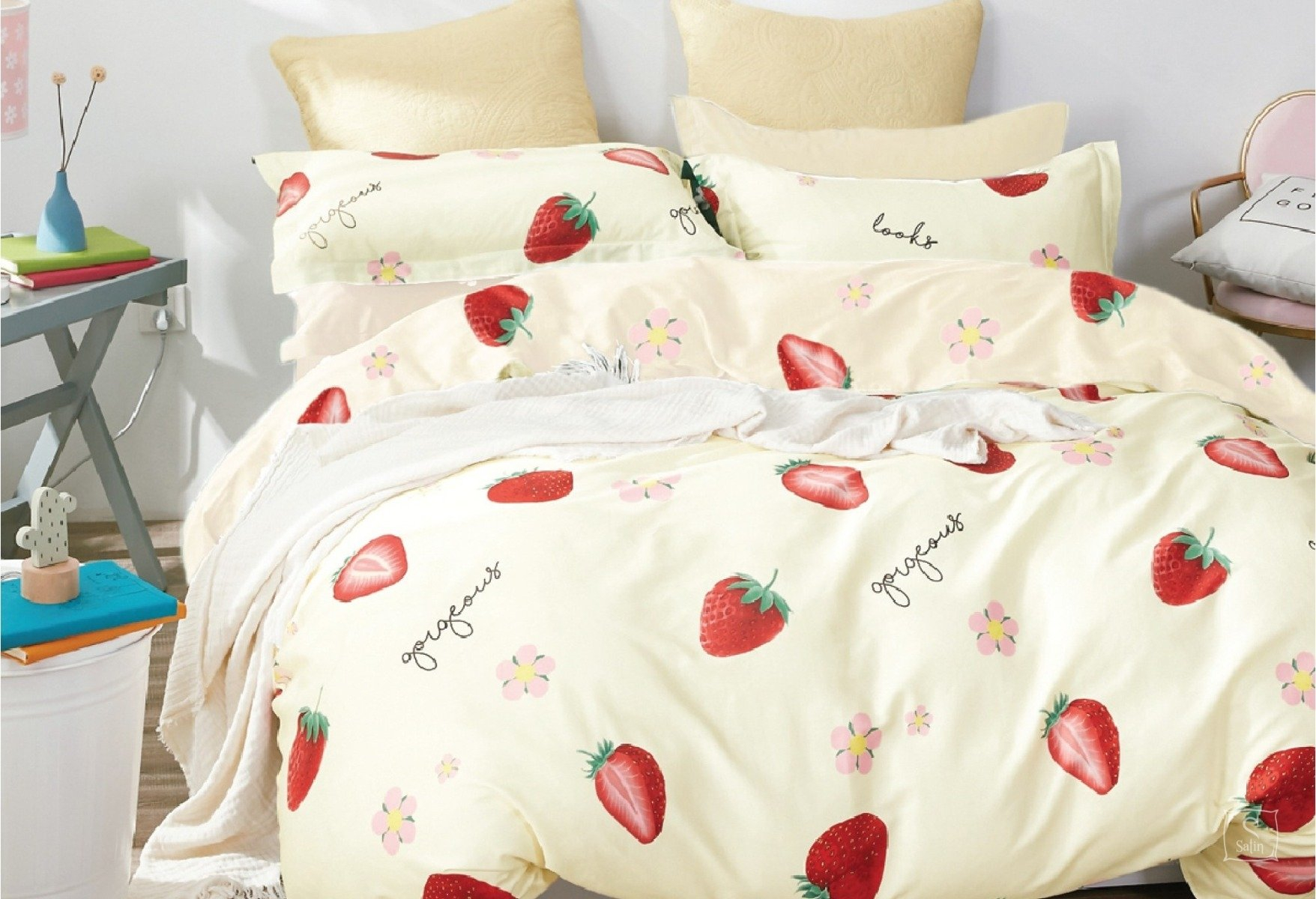На основі бавовни виробляється сатин - він схожий на атлас, його лицьова сторона гладенька. Але зворотний бік нагадує звичайну бавовняну тканину, тому вона приємна до тіла, а також не буде ковзати по ковдрі (підодіяльник) або подушці (наволочка).