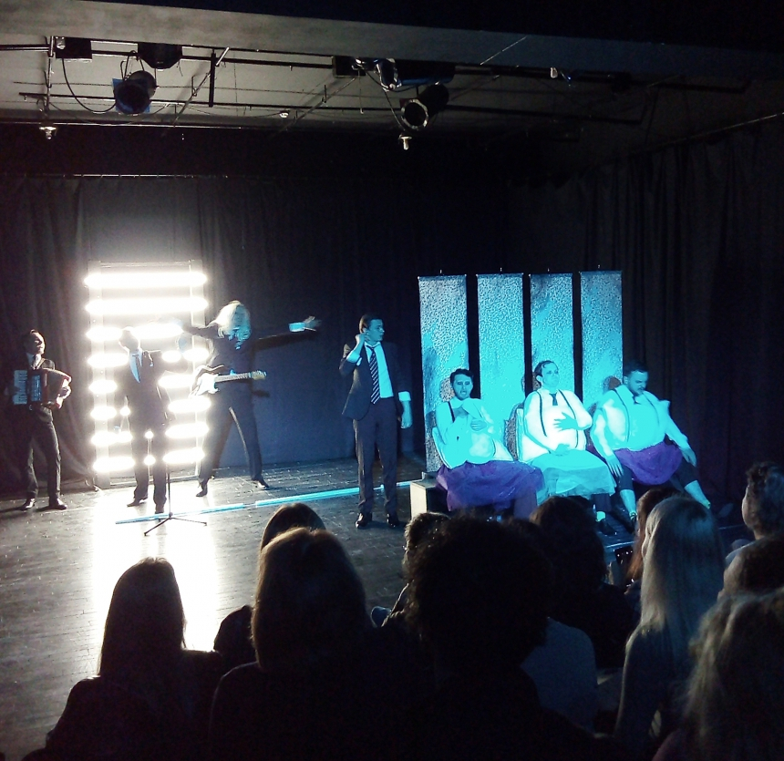 Додамо, що всі ролі у виставі, навіть жіночі, зіграли чоловіки. І щоб показати особливості життя українців, вони приміряли чимало образів, в тому числі образи шекспірівського «Отелло» та «Трьох товстунів» з казки Юрія Олеші.
