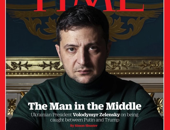Свіжий номер американського тижневика TIME у Європі вийшов з президентом Володимиром Зеленським на обкладинці. Один із центральних матеріалів номера має такий заголовок: «Посередник. Як український президент відчуває себе між Путіним і Трампом».