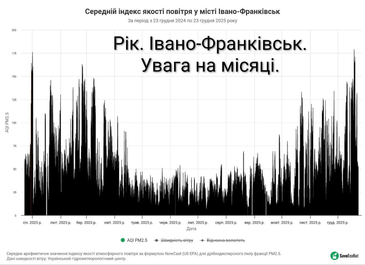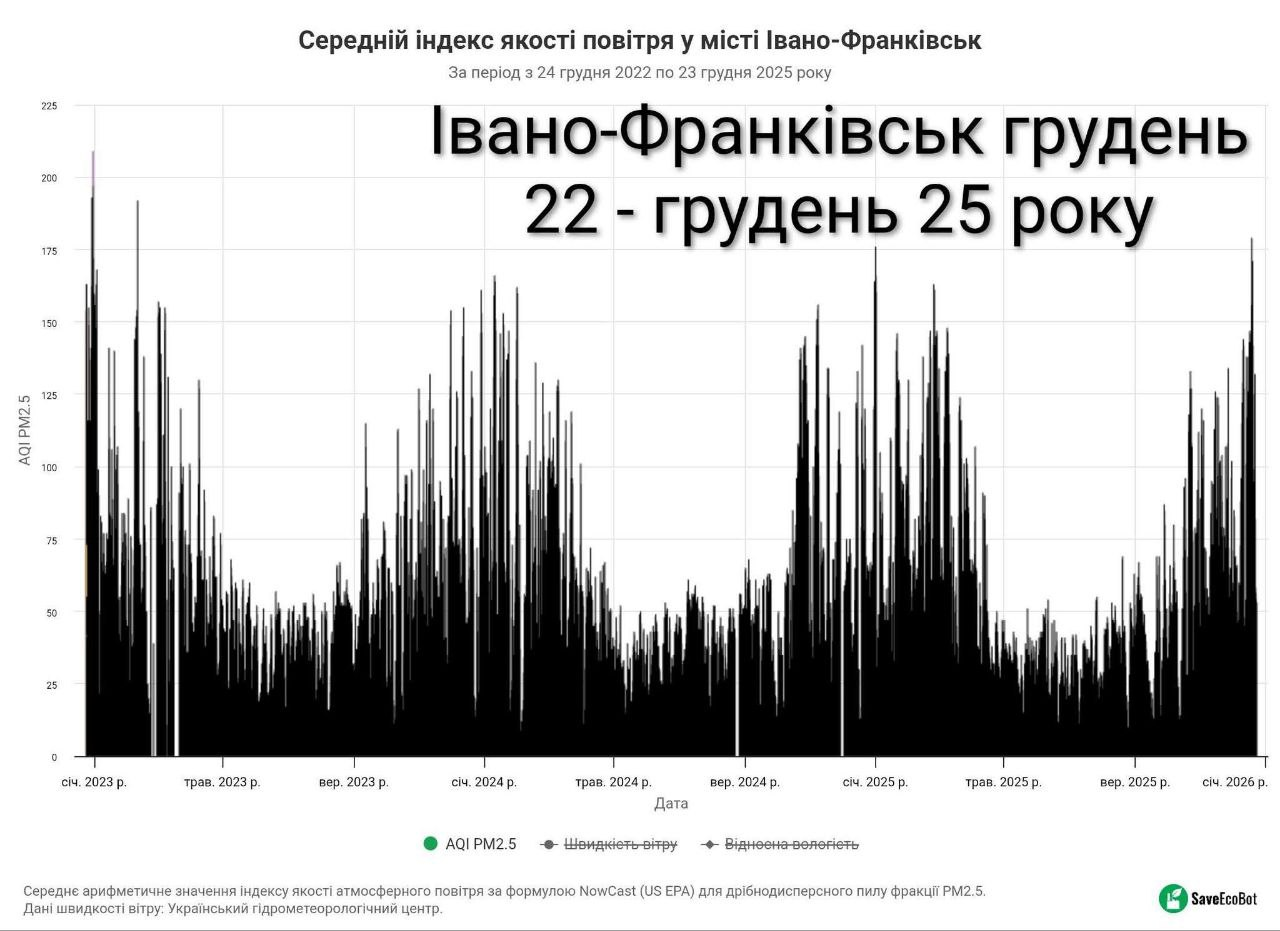 Показник якості повітря AQI в Івано-Франківську 19 грудня збільшився до 179, що є найвищим рекордним індексом серед всіх обласних центрів України.