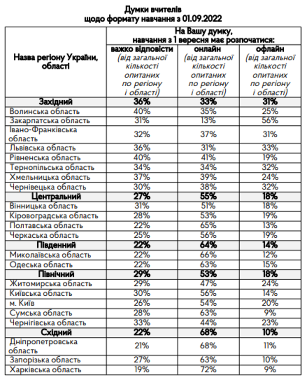 Довідково: Державна служба якості освіти України та її територіальні органи проводили опитування впродовж 3–8 серпня 2022 року.