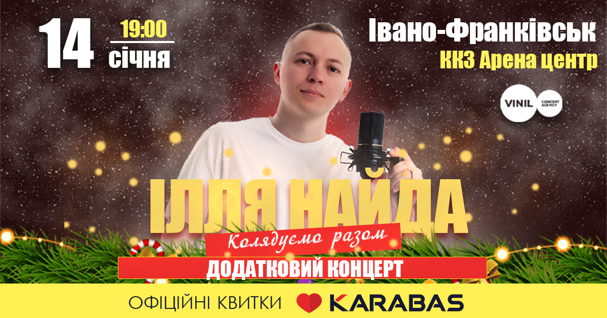 Так, 14 січня у ККЗ Арена Центр в Івано-Франківську відбудуться два різдвяні концерти Іллі Найди «Колядуємо разом!».