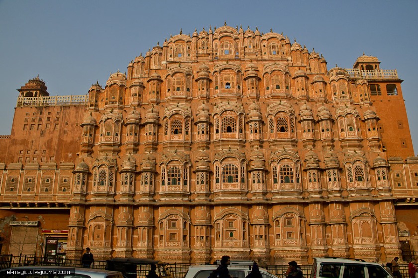 А ось ще одна візитна картка міста - Хава Махал (Палац вітрів). Насправді це одна велика стіна, а позаду порожнеча. З цього палацу колись місцеві принцеси спостерігали за життям звичайних людей.