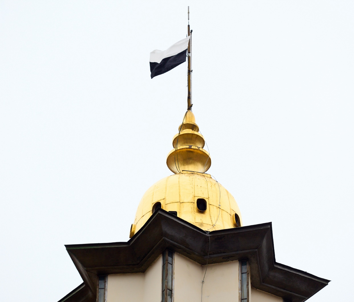 В Івано-Франківську на Ратуші підняли «Прапор Надії» — біло-чорне полотно, що символізує боротьбу за полонених та безвісти зниклих.