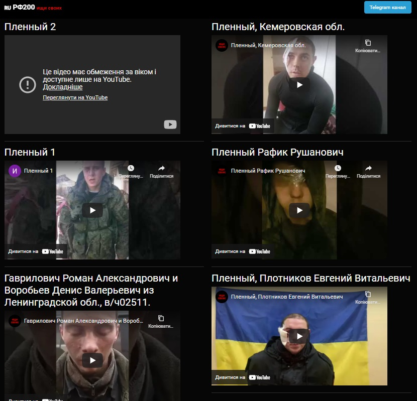 "На ньому ви знайдете інформацію про полонених та вбитих російських солдатів в Україні з моменту початку окупації. Тут ми оперативно розміщуватимемо фото та відео, які ми отримуємо з поля бою.