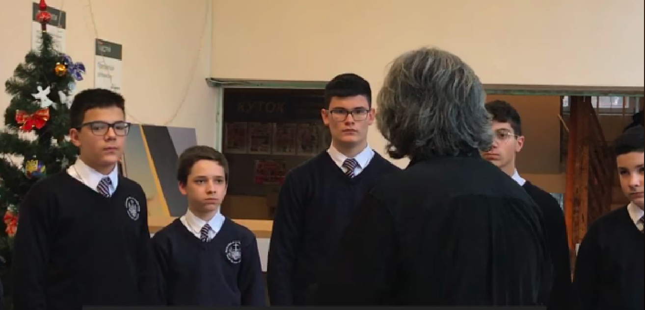 Колядку співають григоріанським хоралом. Крім того, хлопчики вивчили натомість українську колядку “Нова радість стала”.