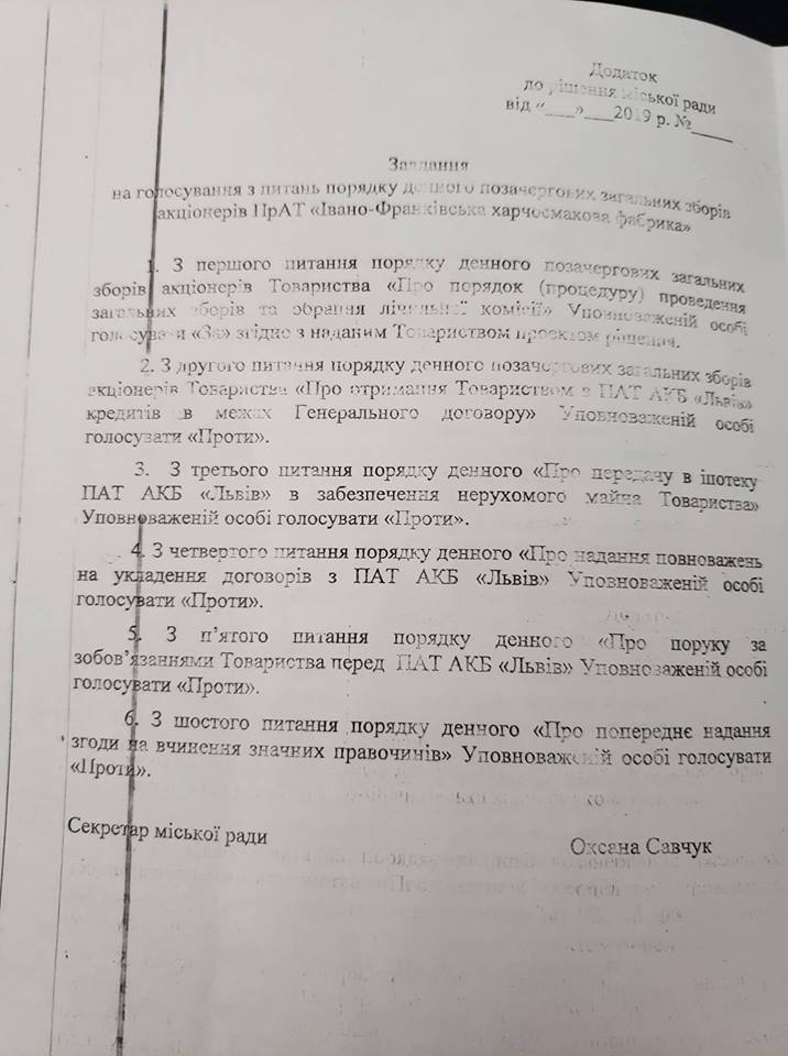 Івано-Франківська міська рада володіє 10, 62% акцій фабрики й щоб брати участь у зборах, їй потрібно рішення сесії.