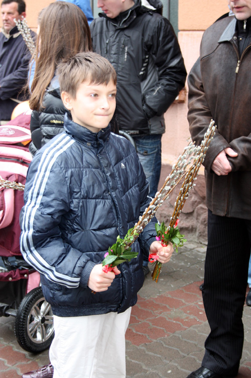 На службі освячуються пальмові гілочки – в пам'ять про гілля, яким народ вистилав дорогу перед Христом при Його в’їзді до міста. В наших широтах з пальмами скрутно, тому святять вербу.