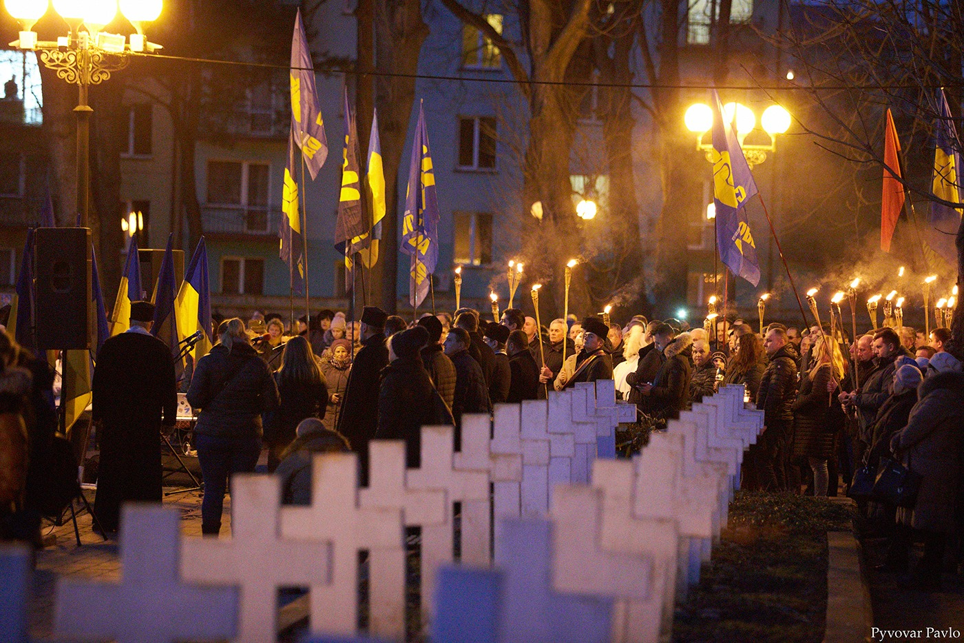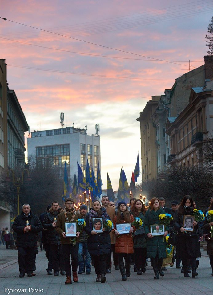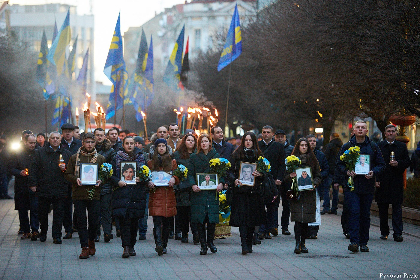 Сьогодні, 18 лютого, містом пройшла хода франківців зі смолоскипами.