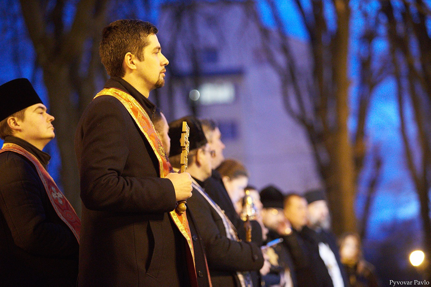 Тут священнослужителі відправили панахиду за полеглими Героями Небесної сотні.