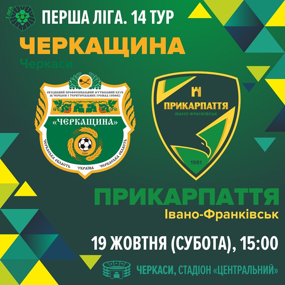 Поєдинок 14-го туру Першої ліги «Черкащина» - «Прикарпаття» розпочнеться о 15:00.