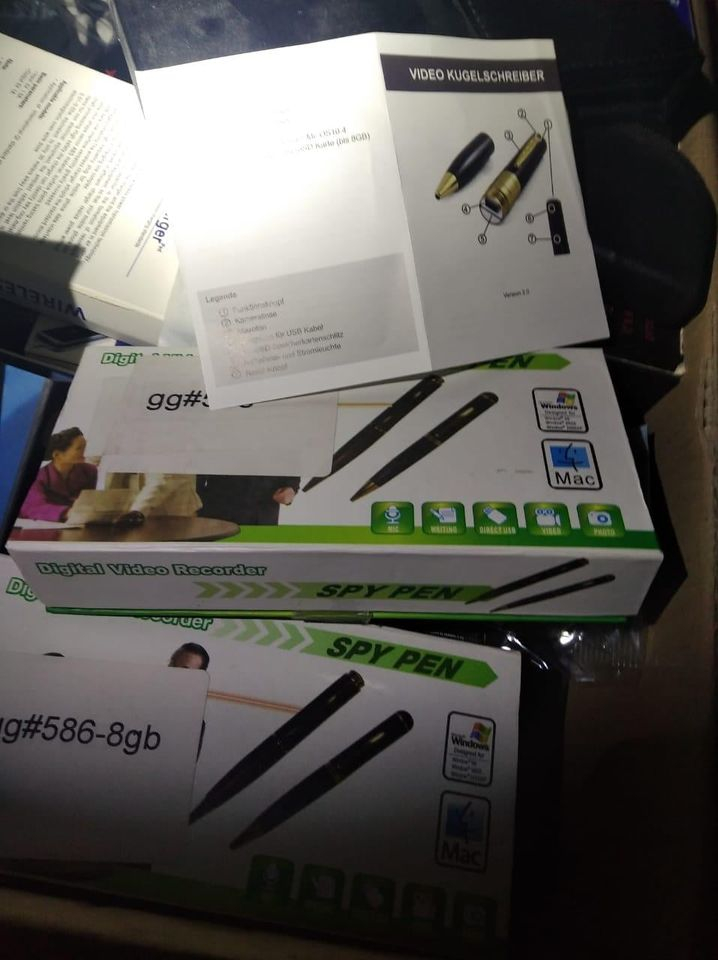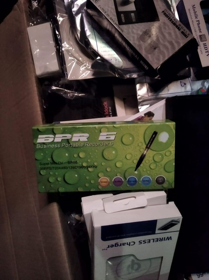 Так в автомобілі знайшли дві коробки з 15 предметами, схожих на кулькові ручки з вмонтованою на них мікрокамерою та USB-роз’ємом в окремій коробці кожна, різних моделей.