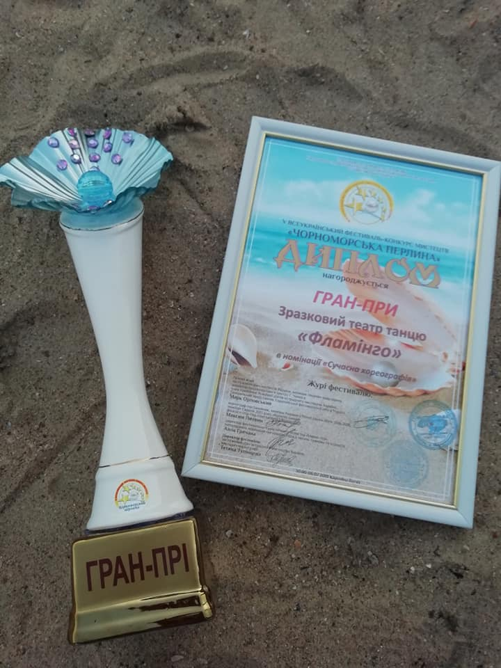 Гран-прі  вихованці зразкового театру танцю «Фламінго» здобули на Всеукраїнському дитячо-молодіжному фестивалі-конкурсі мистецтв «Чорноморська перлина», який проходив в Кароліно-Бугазі.
