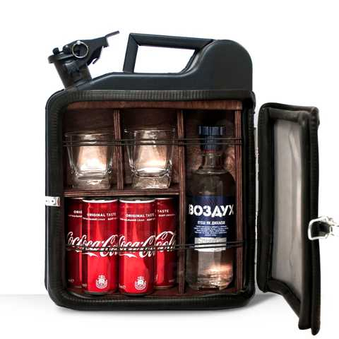 Каністра подарунок в вигляді міні бару - це не просто річ, це цілий атмосферний бар у компактному форматі. Вона об'єднує в собі функціональність та елегантний дизайн, створюючи вишуканий акцент у будь-якому інтер'єрі. Її можна легко розташувати вдома, на вечірці, на пікніку або навіть в офісі - вона завжди буде в центрі уваги та додасть вечору особливої атмосфери.