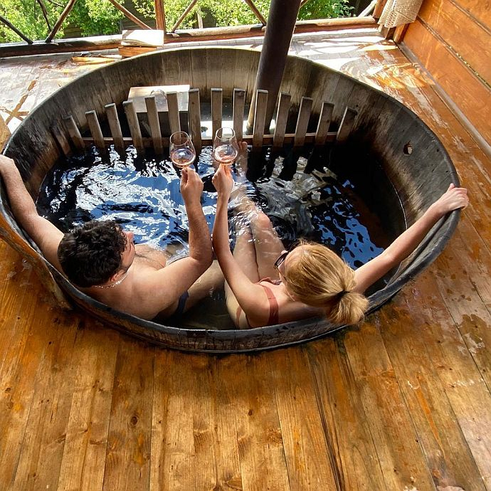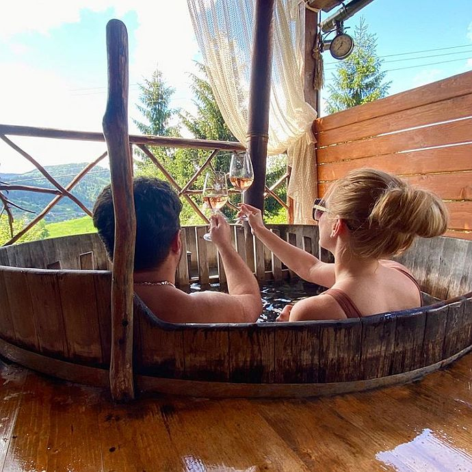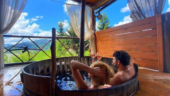 Карпатська романтика: Федишин порелаксувала в чані з чоловіком та вином (ФОТО)