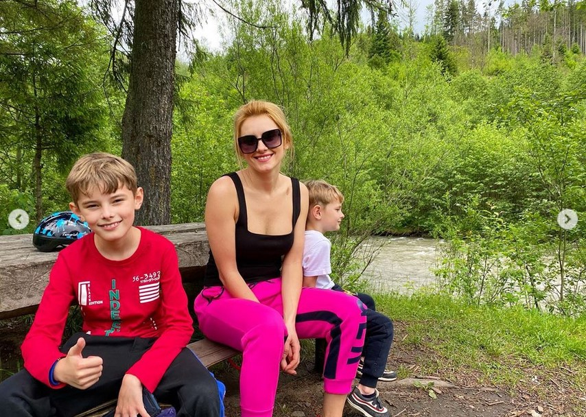 "Ми вирішили трохи активізувати наше літо, адже вже половина червня. Поїхали у Карпати, а саме у Славське, що неподалік від Львова. Милуємося природою, дихаємо свіжим повітрям, сидимо біля річки і насолоджуємося часом, проведеним разом", - написала Федишин.