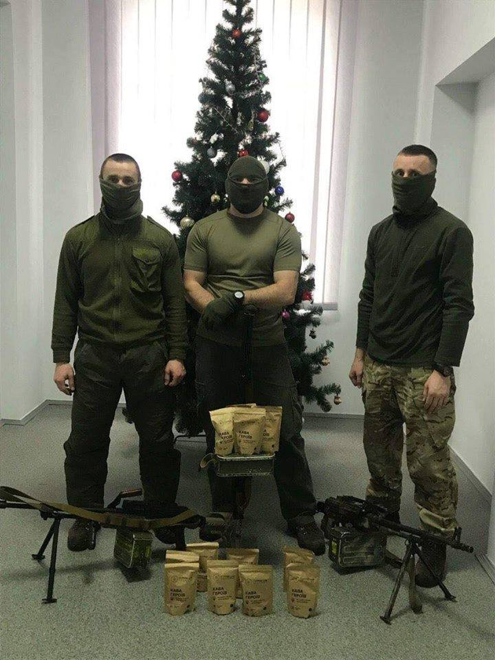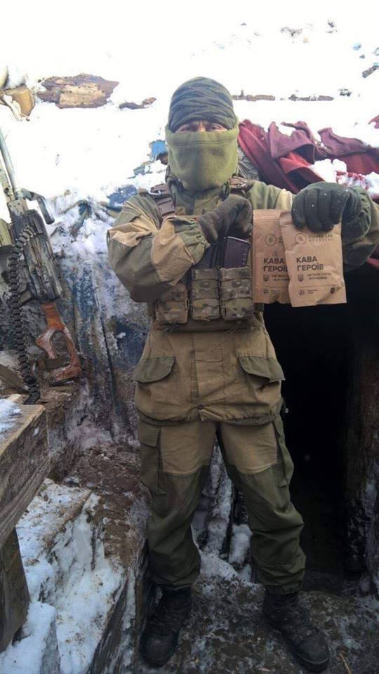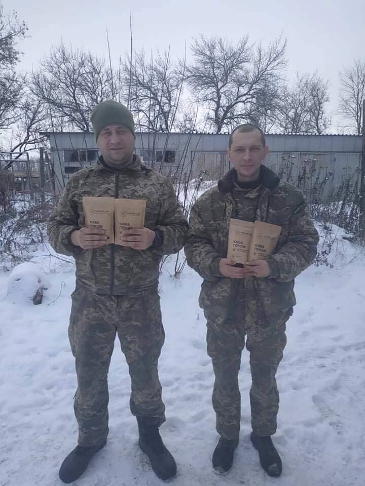Разом зі співзасновниками нашої компанії безкоштовно виділили каву, наші друзі «Brendari» візуалізували упаковку, а Андрій Фармуга з ГС "Івано-Франківська обласна асоціація учасників та ветеранів АТО" взяв на себе всю логістику по доставці. Після цього перша партія в 33 упаковки, попрямувала на передову.