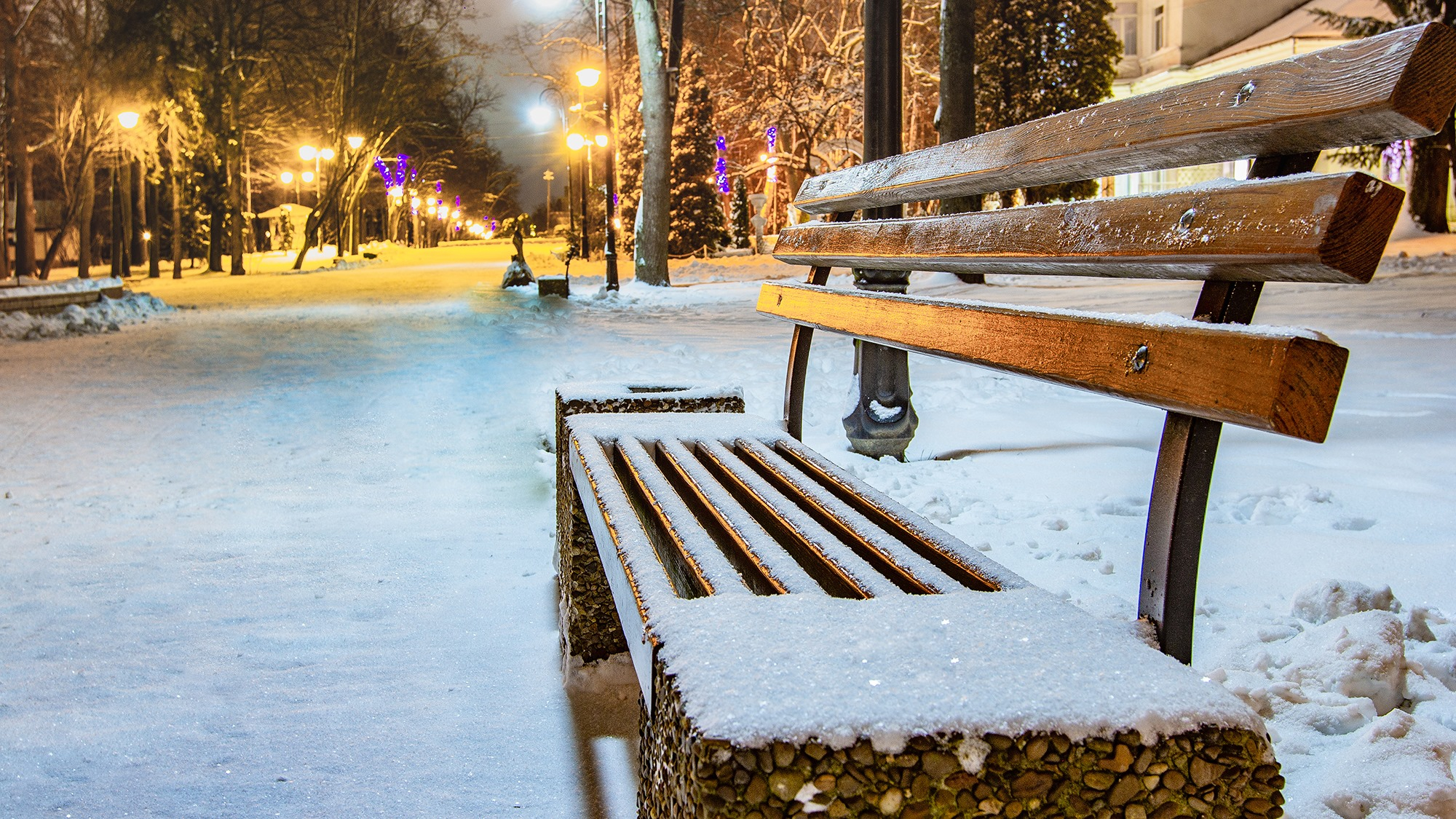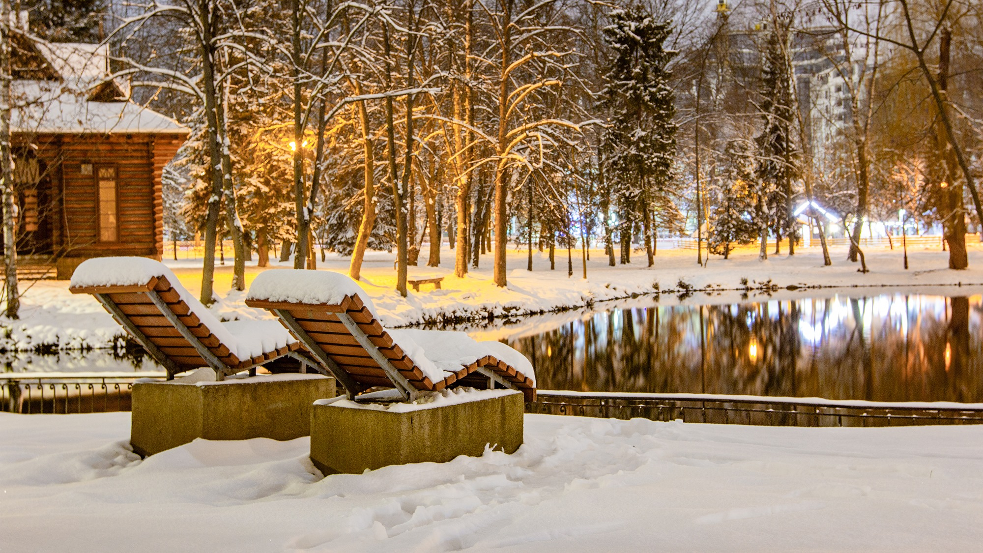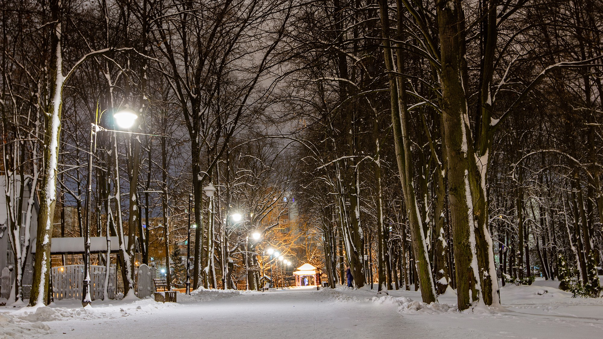 У мережі опублікували фото засніженого парку у світлі вечірніх вогнів, пише Фіртка.