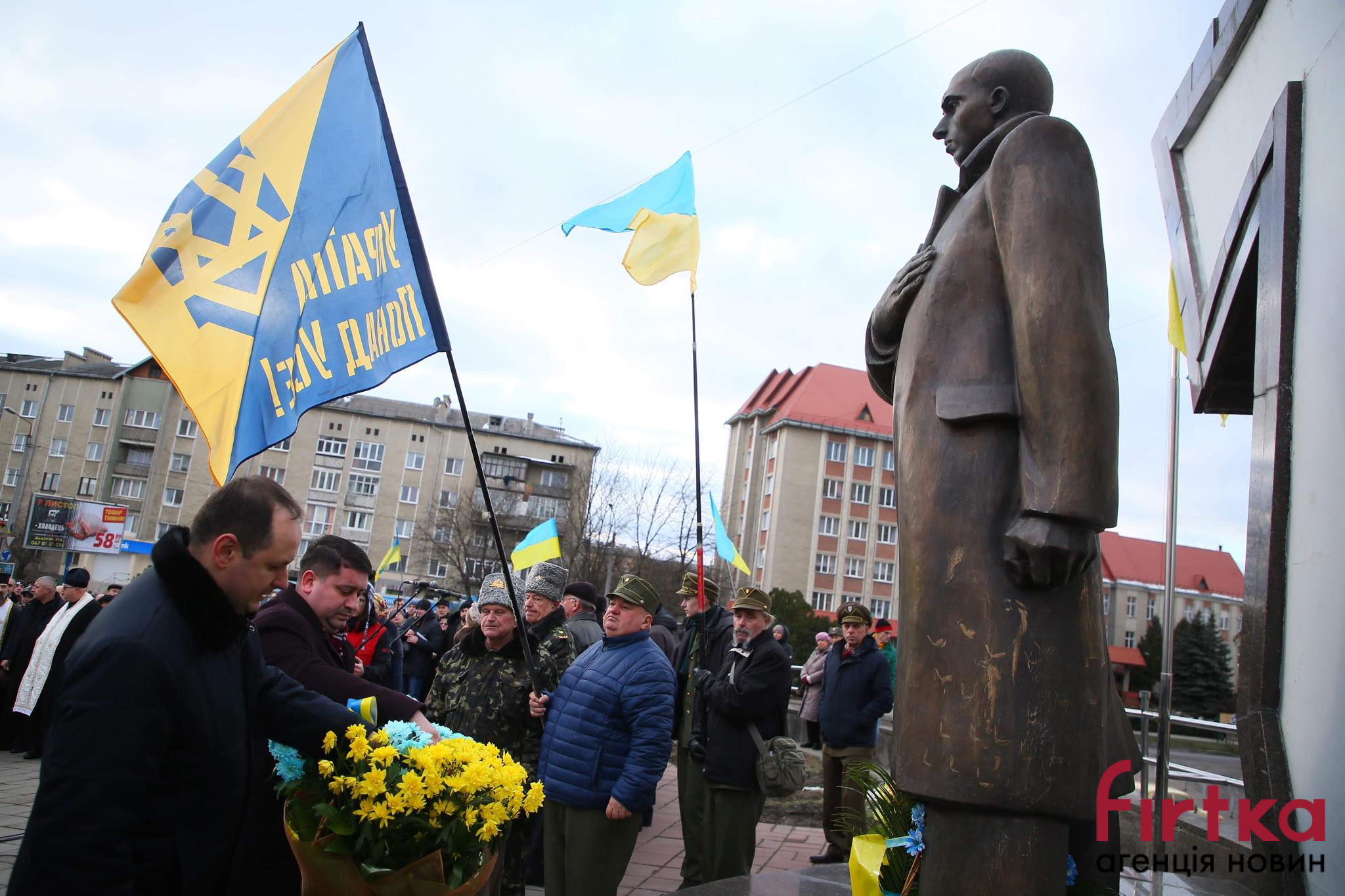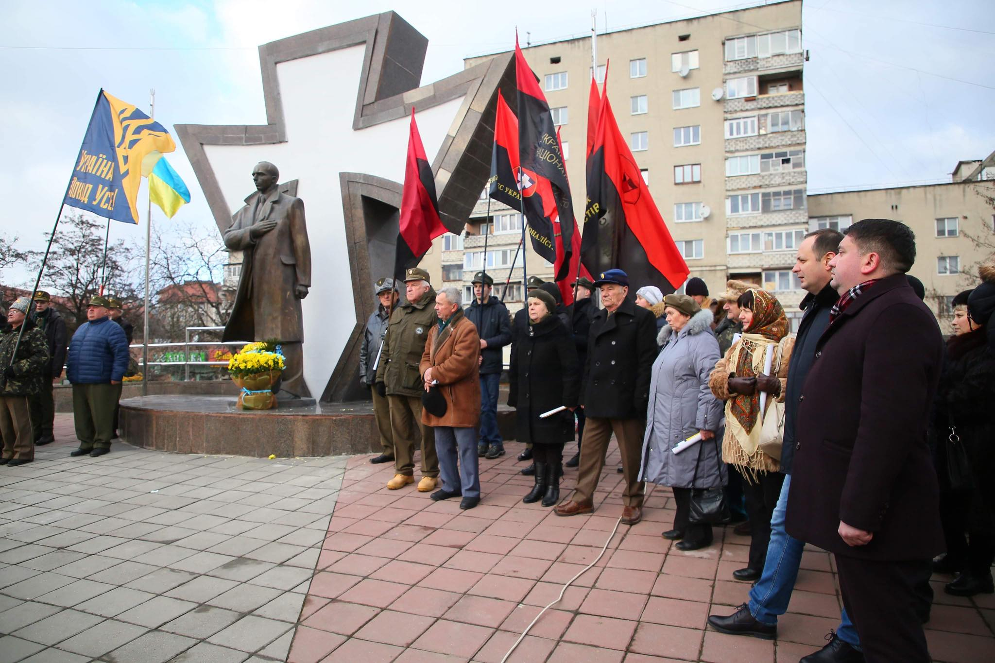 Так, міський голова Руслан Марнціків разом із начальником управління інформаційної діяльності та комунікацій з громадськістю облдержадміністрації Володимиром Джигітою поклали квіти до пам'ятника Бандери.