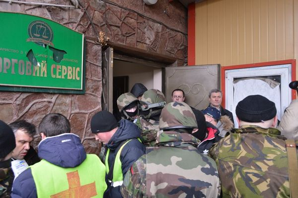 Підприємці заручилися підтримкою бійців івано-франківської «Самооборони» та вирушили до офісу фірми, яка орендує Центральний ринок. Збурений натовп налічував уже сотні осіб. По дорозі обурені іванофранківці зустріли директора фірми, який донедавна був керівником Івано-Франківської міської організації “Партії регіонів”, Ігоря Дутку і разом з ним увійшли до його офісу.
