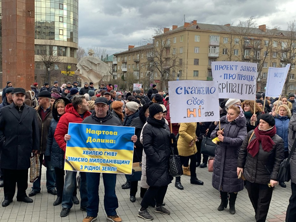 "Хвилею гніву змиємо Милованівщину": під стінами Івано-Франківської ОДА страйкують профспілки (ФОТО)
