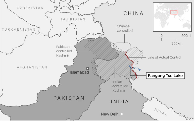 У заяві в понеділок ввечері представник командування Народно-визвольної армії Китаю заявив, що індійські війська "незаконно перетнули" лінію фактичного контролю (LAC), нечітко визначену лінію розмежування, яка розділяє дві країни, і увійшли під гору Шенпао - регіон біля південного берега Пангонг Цо, стратегічно розташованого озера в західній частині кордону довжиною 2100 миль (3779 кілометрів).