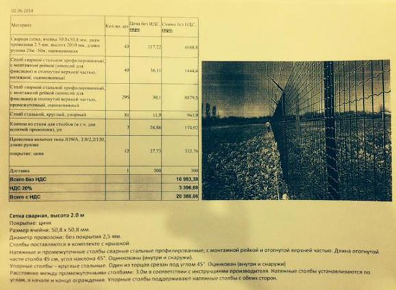 Вартість установки 1920 кілометрової металевої огорожі державного кордону складе близько 50 мільйонів євро. Загальна вартість інженерних робіт по створенню такого загородження складе не більше 100 мільйонів євро. Всі роботи будуть здійснені силами українських підприємств. Значну частину інженерних робіт по створенню такого загородження вже зараз готовий профінансувати благодійний фонд «Дніпро-1».