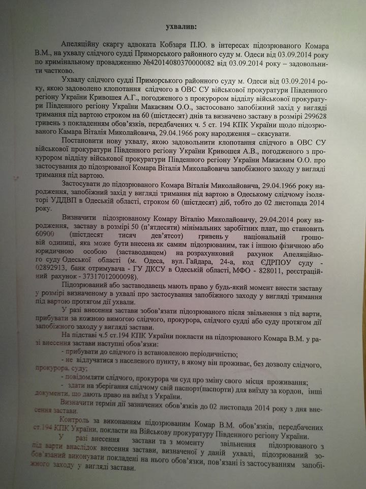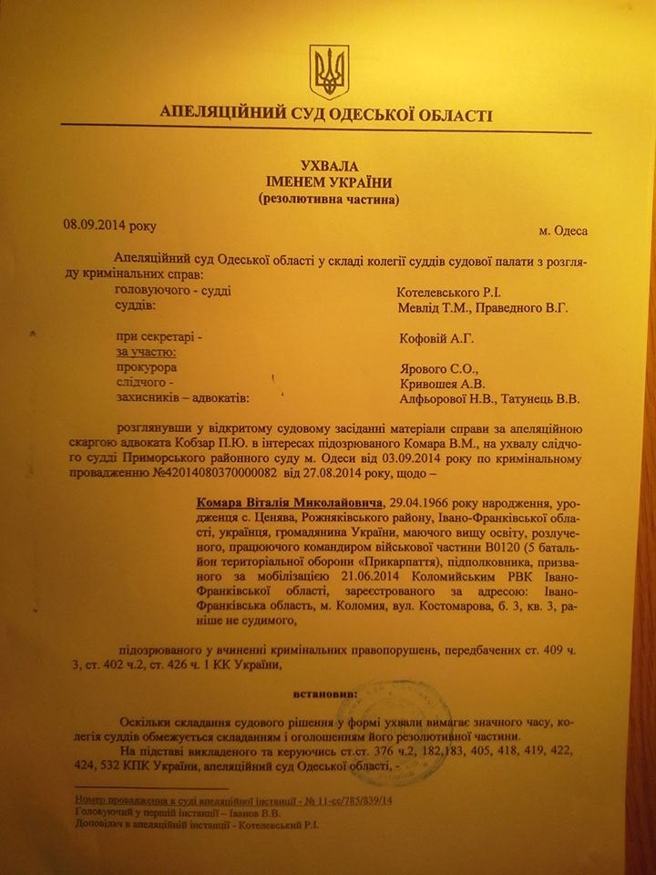 "Фіртка" уже повідомляла, що сьогодні Апеляційним судом Одеської області було винесено рішення апеляційної інстанції по справі комбата батальйону "Прикарпаття".