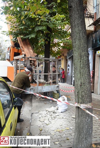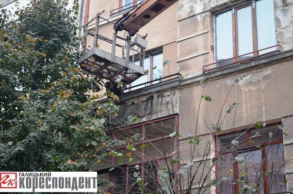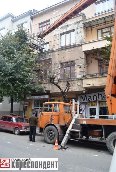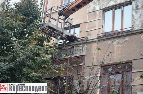 Сьогодні, 31 жовтня, комунальники взялися за демонтаж аварійного карнизу, пише ГК.