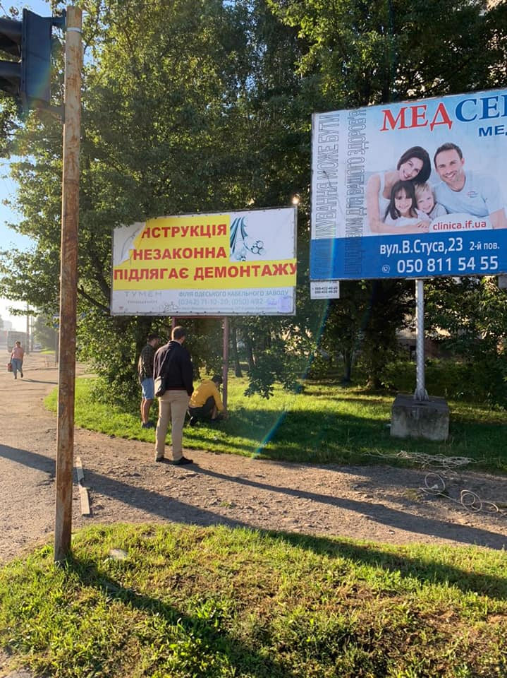 "Незаконна споруда": як у Франківську креативно борються із сітілайтами на електроопорах (ФОТО)