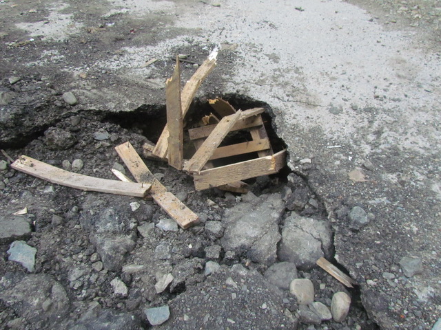 Комунальники довго не роздумували. Приїхали, привезли машину зірваного асфальту і засипали яму, пише ГК.