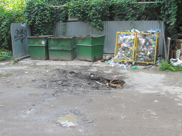 По вулиці Лепкого,1 в Івано-Франківську 13 серпня поруч із контейнерним майданчиком провалилася земля. З’ясувалося, що там – бомбосховище.