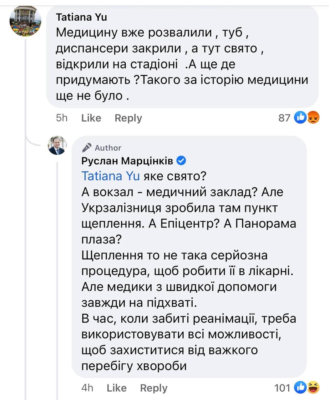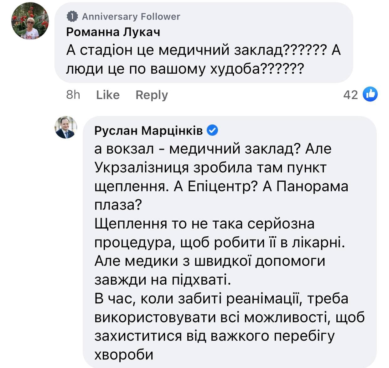 Так, очільник міста Руслан Марцінків доручив зробити пункт масової вакцинації на стадіоні «РУХ».