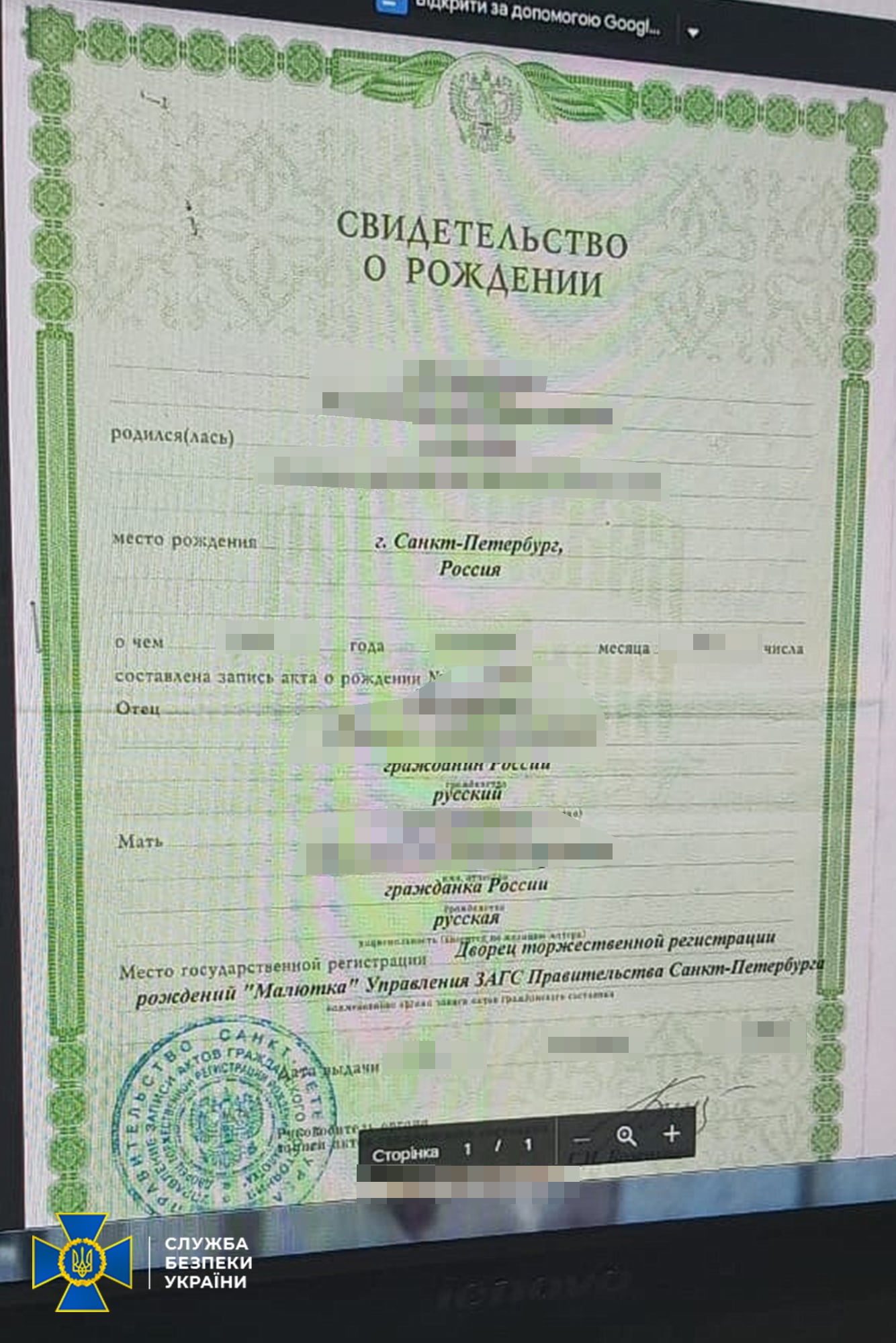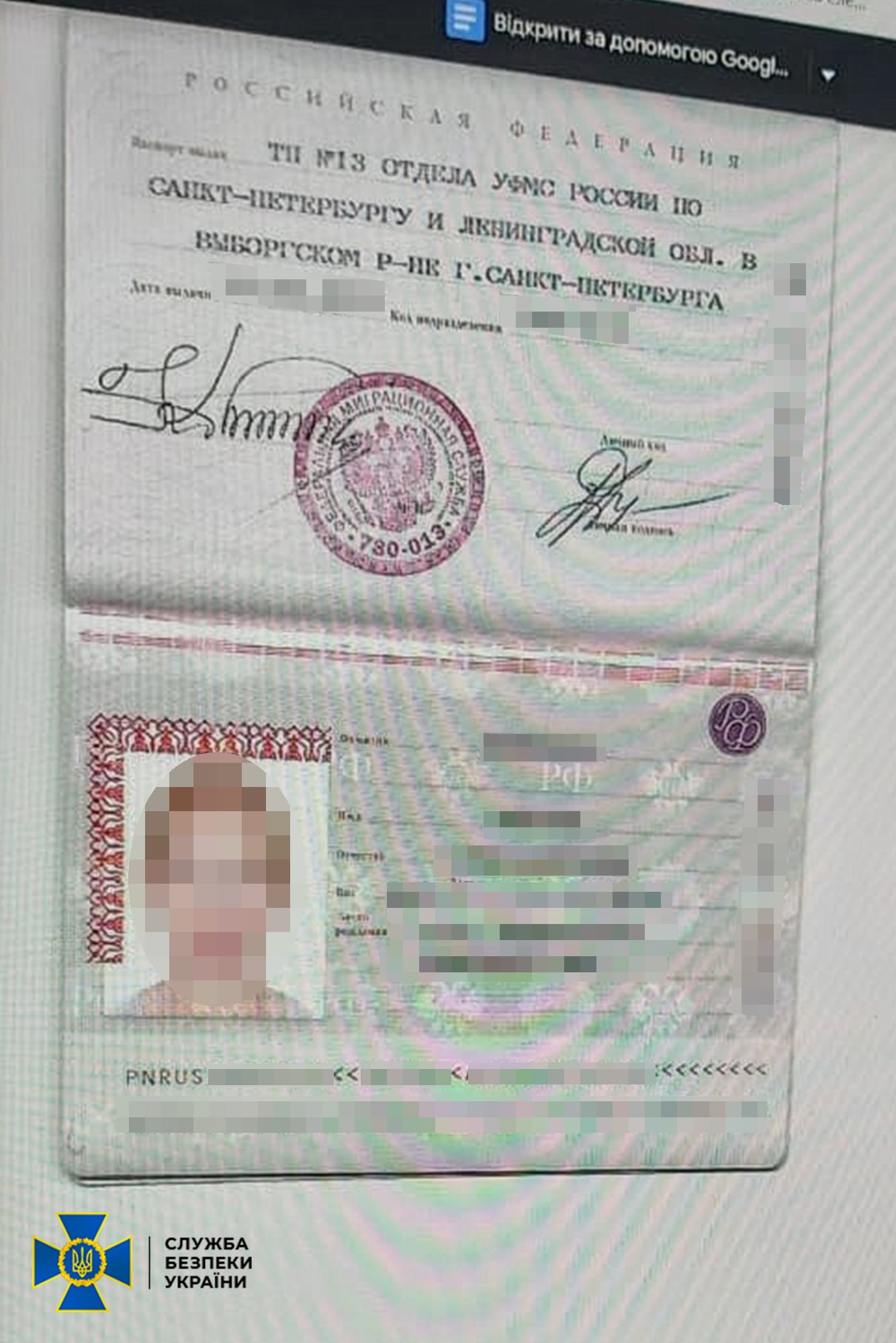 "Триває досудове розслідування за ознаками злочинів, передбачених ч. 1 ст. 111 – «Державна зрада», ст. 209 – «Легалізація (відмивання) майна, одержаного злочинним шляхом», ст. 358 – «Підроблення документів, печаток, штампів та бланків, збут чи використання підроблених документів, печаток, штампів» КК України", - додають в СБУ.