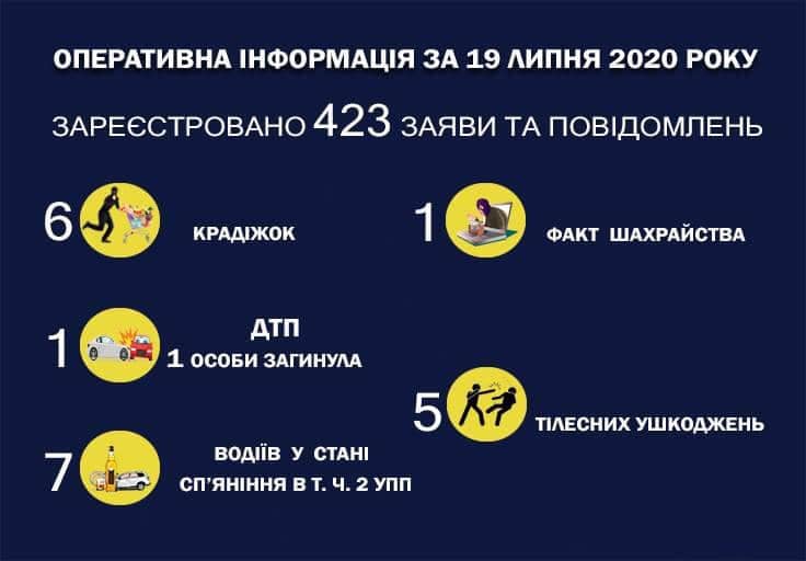 Впродовж минулої доби, 19 липня, в Івано-Франківській області на "лінію 102" надійшло 423 заяви та повідомлення.