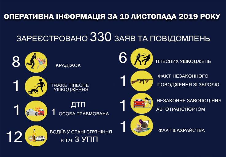 Впродовж минулої доби, 10 листопада, в Івано-Франківській області на "лінію 102" надійшло 330 заяви та повідомлення.