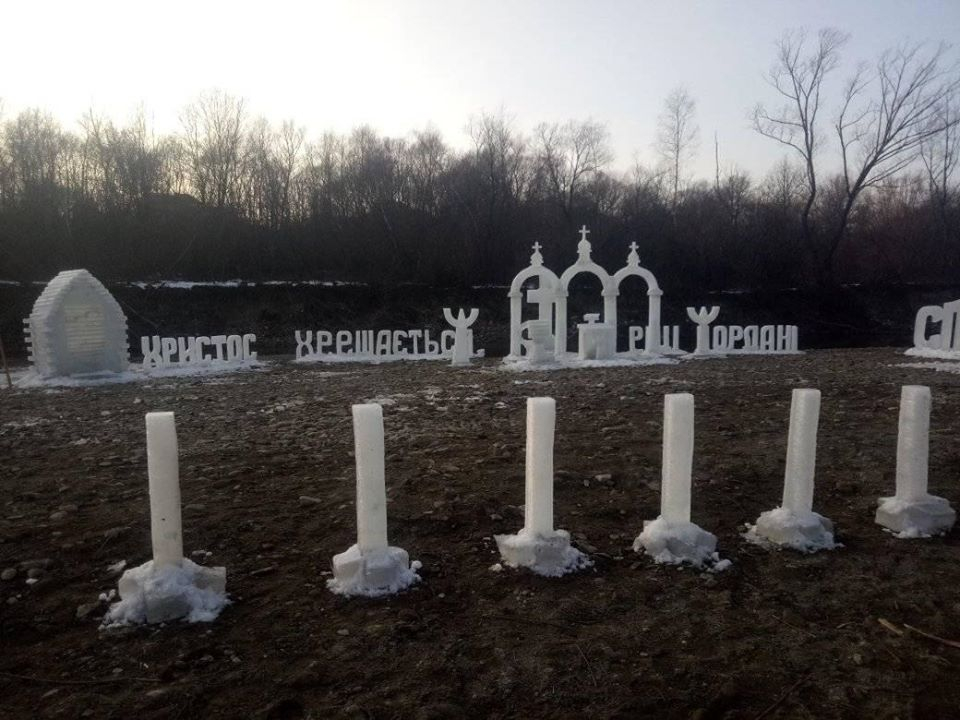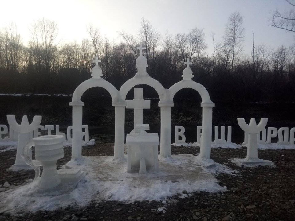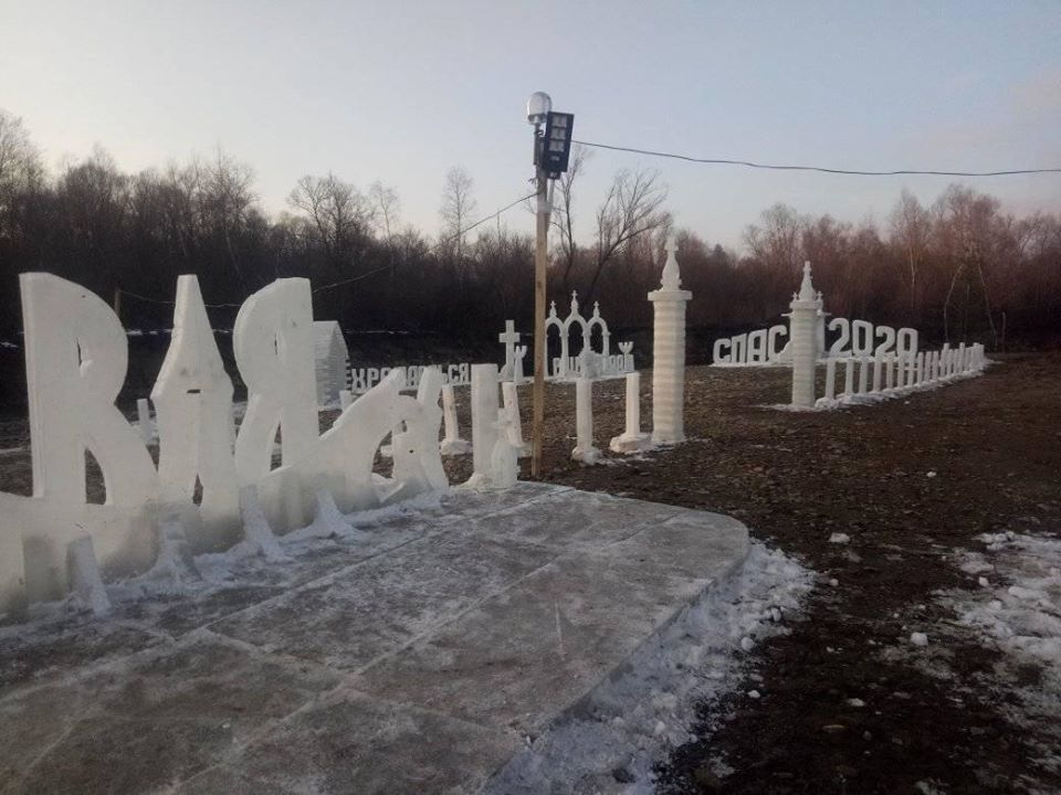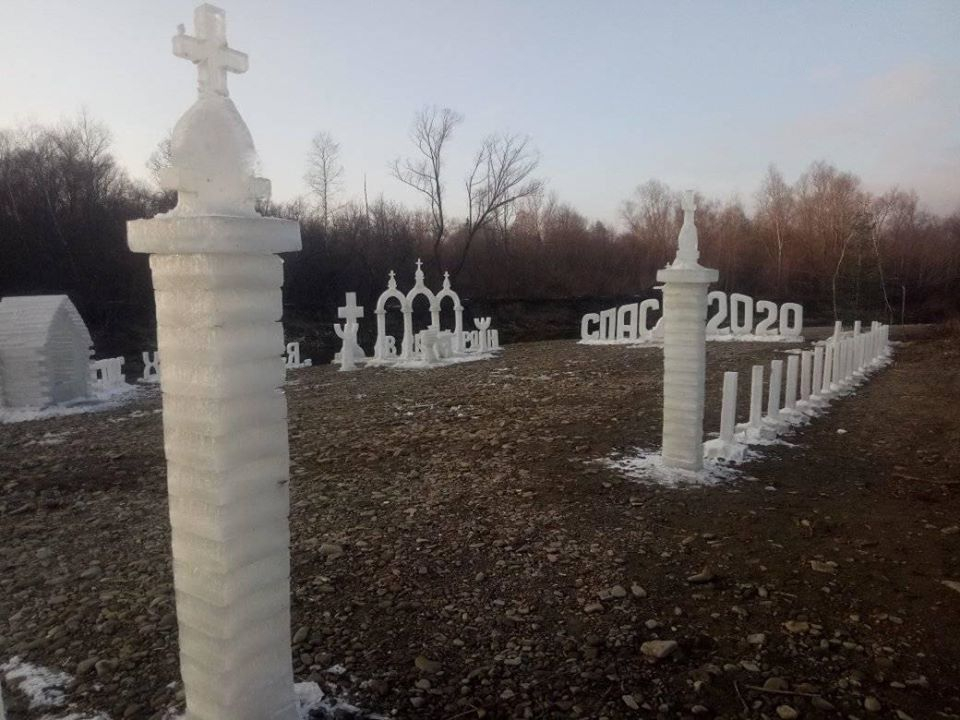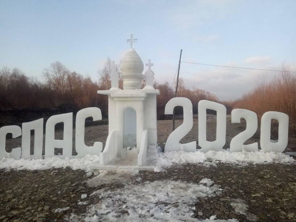 У селі Спас на Коломийщині щороку до Водохреща вирізають з криги скульптури та влаштовують з брил льоду ігрове містечко.