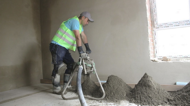 Напівсуха стяжка у квартирі виключає додаткові витрати й час на підйом матеріалів на поверх, адже цементно-піщаний розчин доставляється спеціальними шлангами прямо з вулиці. Уявіть, наскільки це зручно і скільки економиться часу.