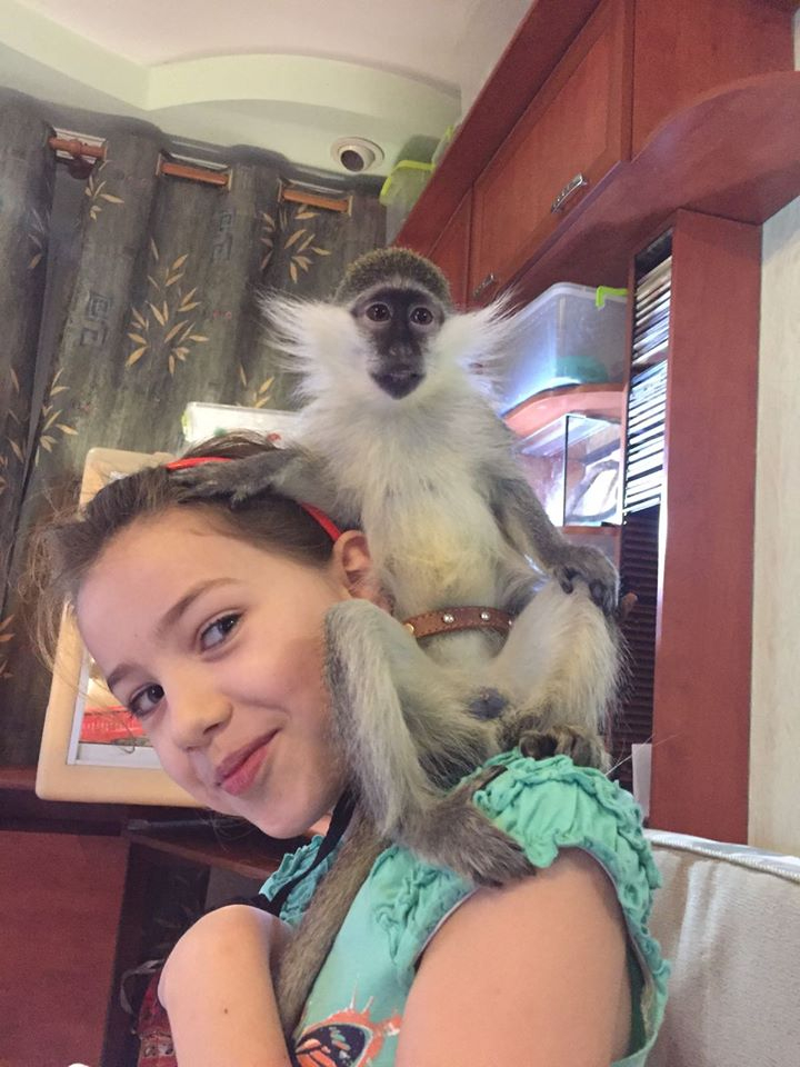 А от молодша, 12-річна Ангеліна, загорілася прихильністю до інших представників дикої фауни – приматів. Їх у Рутковських чотири види, кожного по парі: так звані «зелені» мавпочки, капуцини, гамадрили та ігрунки. Тварини дуже розумні, їхня поведінка багато в чому схожа на людську. Між собою мавпи фліртують, ревнують партнера, з’ясовують стосунки. Примати чітко ідентифікують свого господаря, на відміну від плазунів.