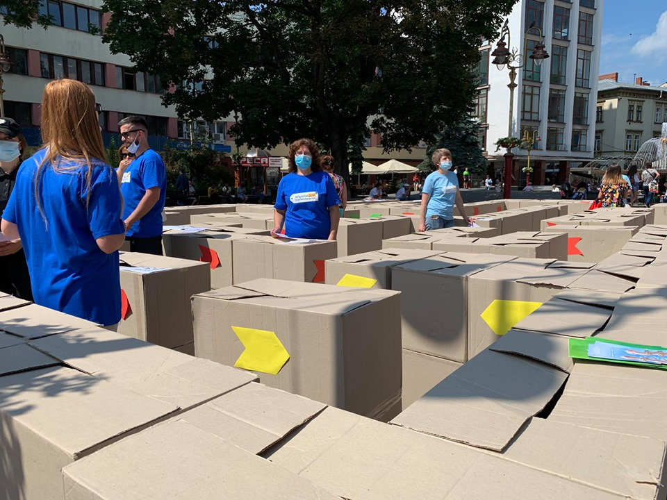 "Лабіринт можливостей" складається з 250 паперових коробок. Є десять станцій, під час яких учасники отримують запитання. У такий цікавий спосіб мешканці та гості міста можуть перевірити свою обізнаність щодо правил безпечної подорожі та працевлаштування.
