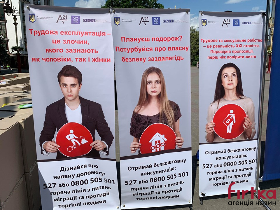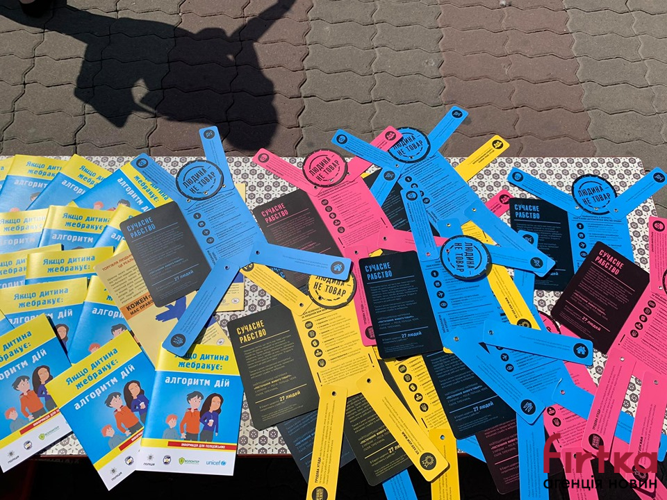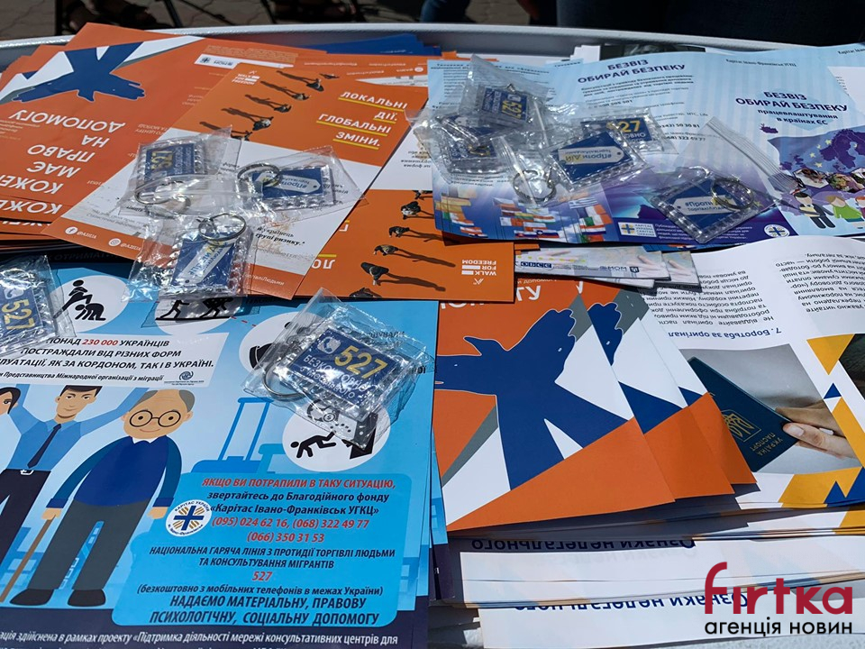 Сьогодні кожен охочий має можливість отримати інформаційні буклети, тематичні браслети та флаєри з інформацією про торгівлю людьми та порадами, як уникнути подібних ситуацій.