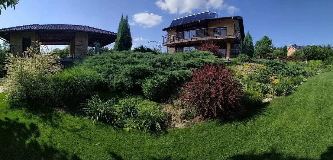 Ландшафтний дизайн — планування та виконання робіт з благоустрою земельної ділянки потребує професійного підходу та ретельної підготовки. Оформлення може бути виконане в різних стилях: класичний, пейзажний, японський, модерн та багато інших. Нескінченні варіації ландшафтного дизайну двору підкреслюють природну красу рослин та створюють унікальне обрамлення домобудівництва. Відповідно до побажань власника земельної ділянки, можливо: