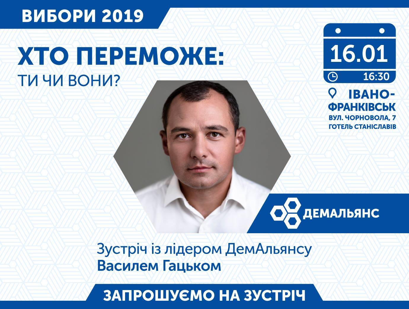 Голова ДемАльянсу Василь Гацько запрошує 16 січня громадськість Івано-Франківська обговорити план побудови країни успішних людей, творення «середнього класу» та перемоги усієї країни.