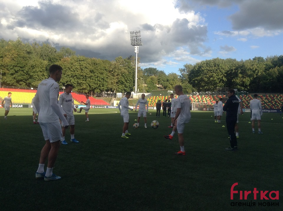 Українська збірна прибула до Вільнюса напередодні та провела тренування на полі зі штучним покриттям стадіону Литовської федерації футболу, на якому і відбудеться матч.