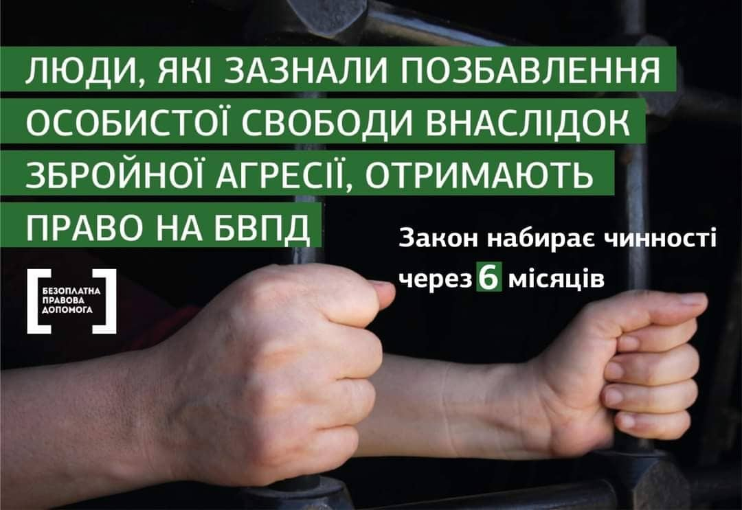Зокрема, особи, стосовно яких встановлено факт позбавлення особистої свободи внаслідок збройної агресії проти України, матимуть право на всі види правових послуг, передбачених частиною другою статті 13 Закону України «Про безоплатну правову допомогу», на час позбавлення особистої свободи та після звільнення у зв’язку із захистом прав і законних інтересів, порушених через позбавлення особистої свободи внаслідок збройної агресії проти України.