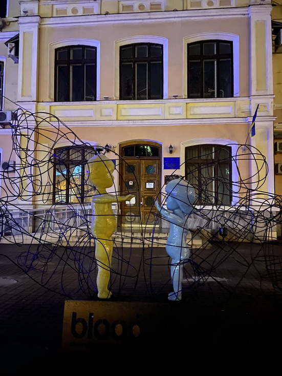 Додамо, що це не перша спільна робота з харків’янами. Знайомство з їхніми роботами розпочалося з інсталяції «Червоний лев», яку розмістили біля ЖК «Парус». Висота фігури 3 метри та ширина 7 метрів. Виготовляли її з металевого пруту, епоксидної смоли, металу та LED-підсвітки. Витрати за роботу та матеріал також компенсувала компанія blago developer.