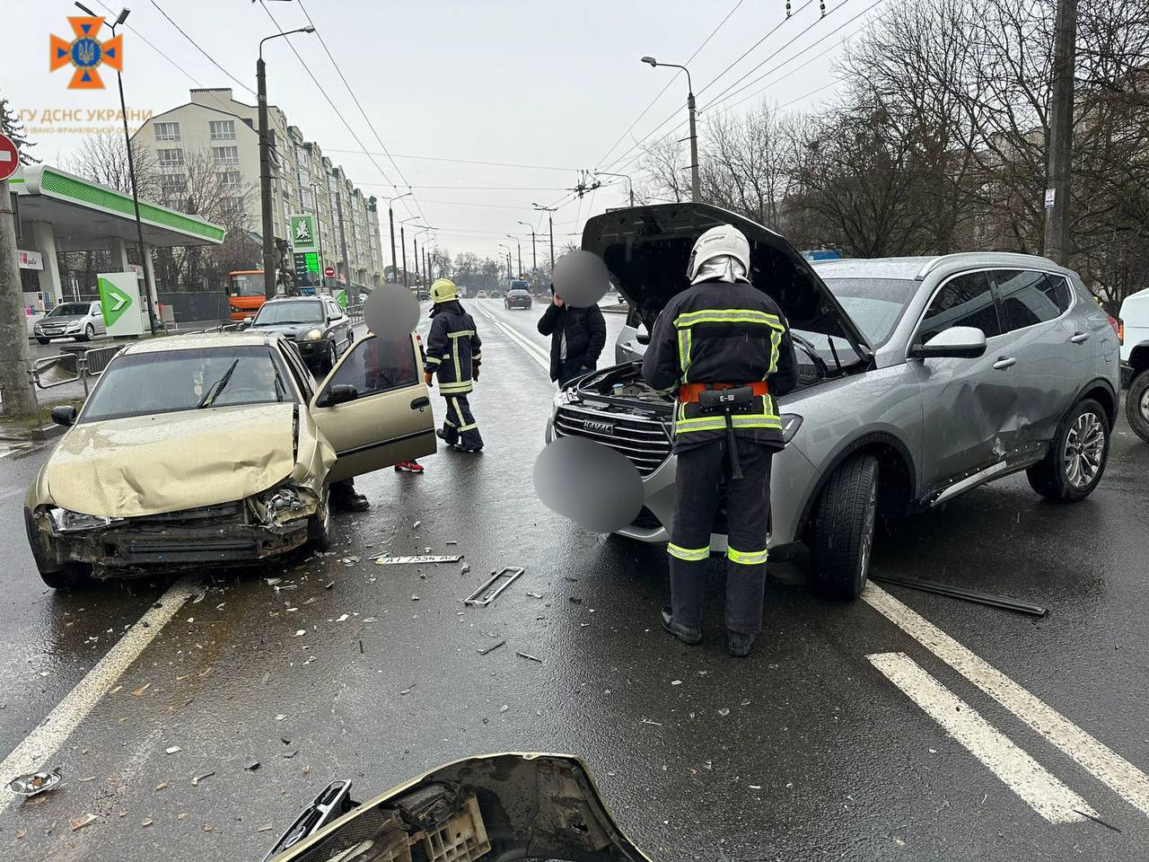 Шостого січня на вулиці Галицька в місті Івано-Франківськ трапилась дорожньо-транспортна пригода за участі двох легкових автомобілів. Внаслідок зіткнення одну людину затиснуло в автомобілі.