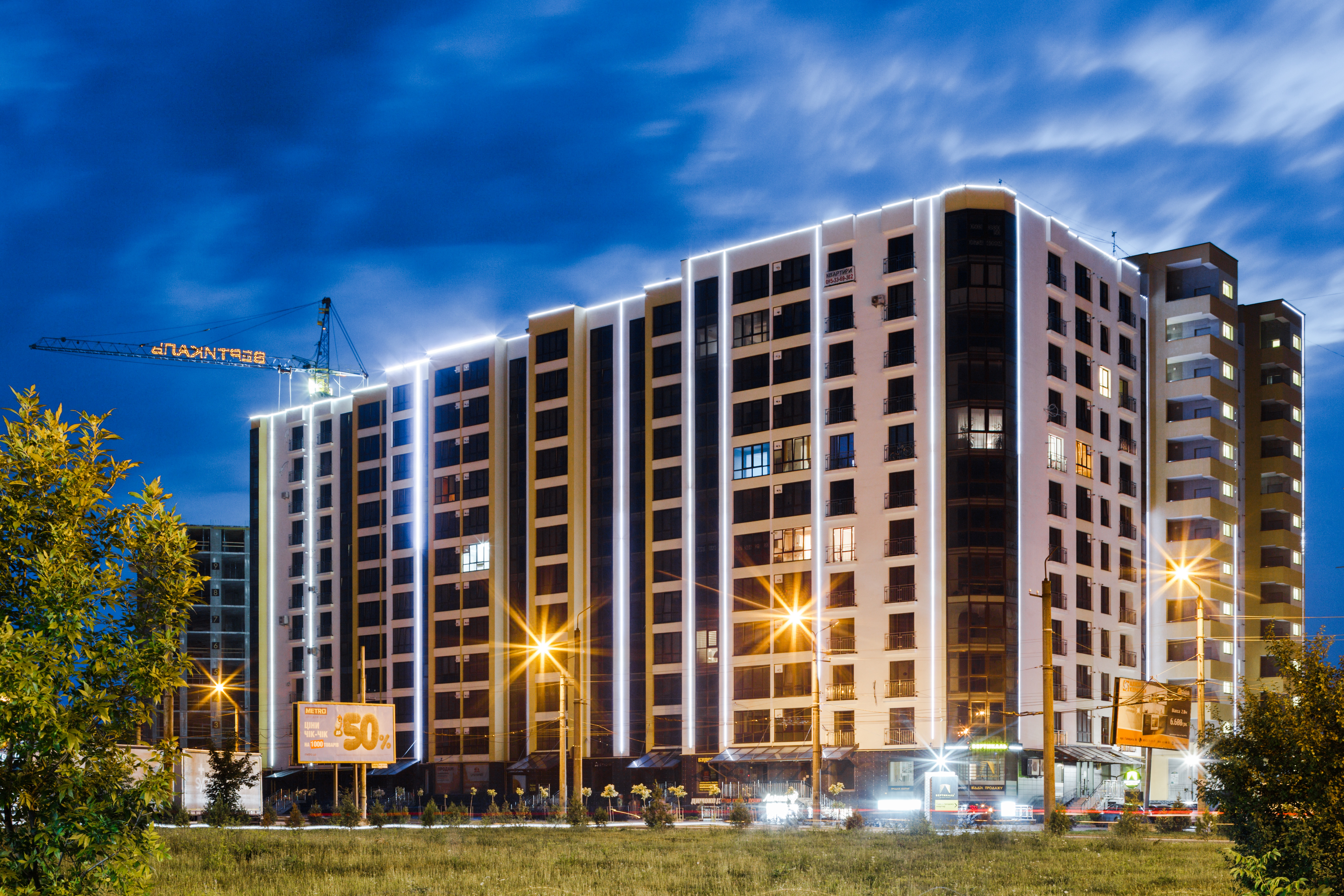 БК Вертикаль довела, що гордістю Івано-Франківська може стати не лише пам’ятка архітектури, а й цілий житловий комплекс. Архітектурне освітлення чудово підкреслює силует довершених ліній ЖК Lystopad та робить його неповторним.