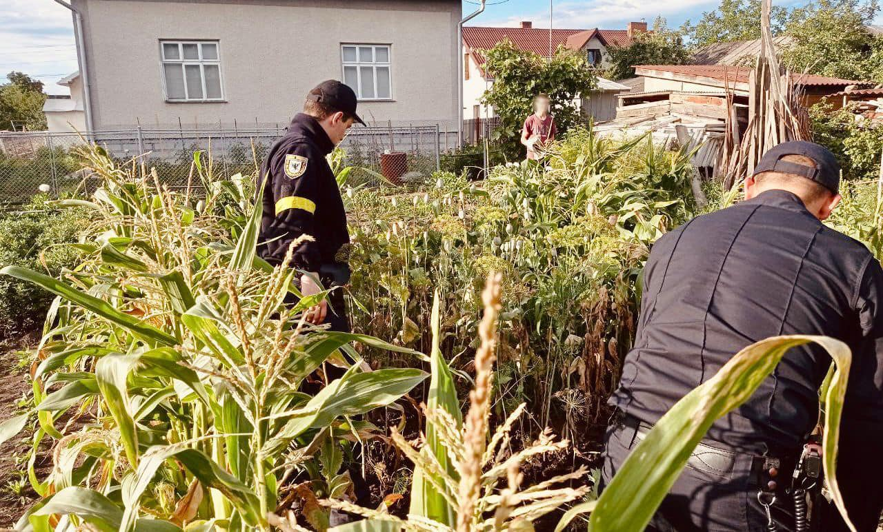 Працівники групи реагування патрульної поліції Тисмениччини, прибувши на виклик, виявили на господарстві одного з місцевих мешканців понад 320 рослин маку.